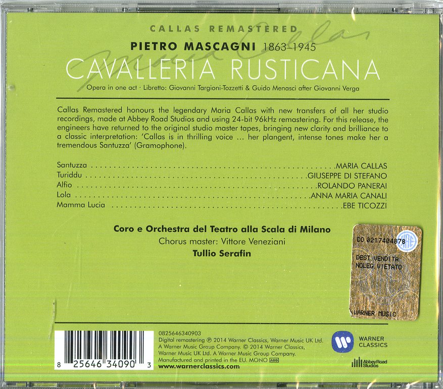 Il tuo cd di / your cd of : Maria Callas( Soprano), Tullio Serafin( Direttore) - Cavalleria Rusticana Cd 0825646340903 sarà spedito e consegnato in 24/48h in Italia 48/72 in Europa / will be shipped and delivered in 24 / 48h in Italy 48/72 in Europe