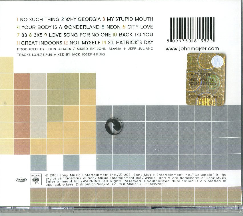 Il tuo cd di / your cd of : Mayer John - Room For Squares Cd 5099750813522 sarà spedito e consegnato in 24/48h in Italia 48/72 in Europa / will be shipped and delivered in 24 / 48h in Italy 48/72 in Europe