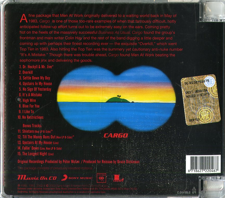 Il tuo cd di / your cd of : Men At Work - Cargo Cd 8718627220467 sarà spedito e consegnato in 24/48h in Italia 48/72 in Europa / will be shipped and delivered in 24 / 48h in Italy 48/72 in Europe