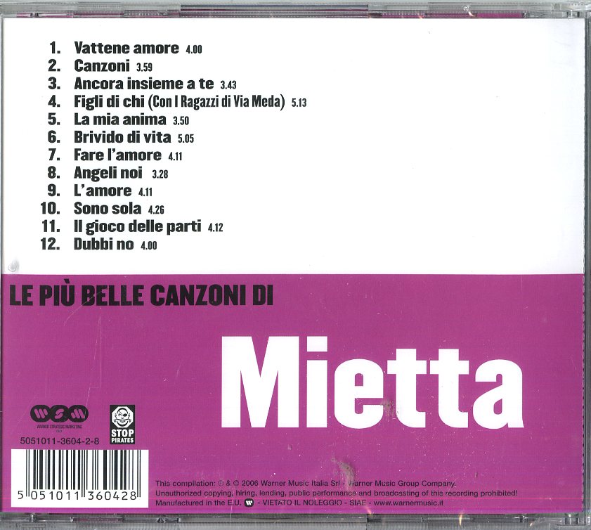 Mietta - Le Piu' Belle Canzoni Di Mietta CD 5051011360428