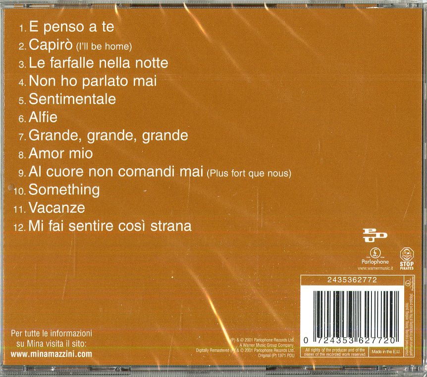 Il tuo cd di / your cd of : Mina - Mina Cd 0724353627720 sarà spedito e consegnato in 24/48h in Italia 48/72 in Europa / will be shipped and delivered in 24 / 48h in Italy 48/72 in Europe