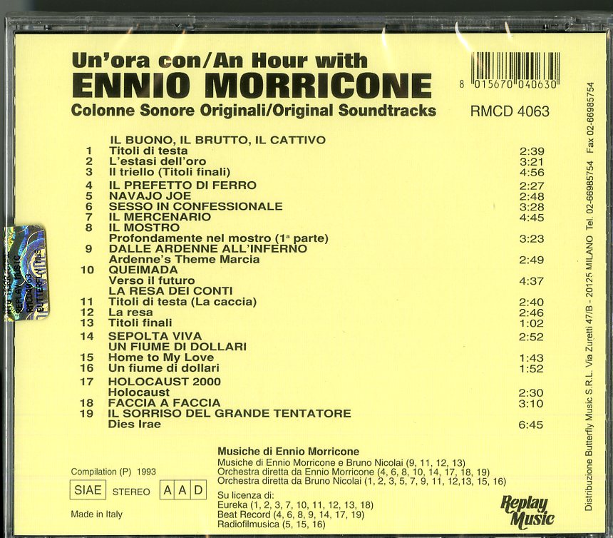 Il tuo cd di / your cd of : Morricone Ennio - Un'Ora Con Ennio Morricone Cd 8015670040630 sarà spedito e consegnato in 24/48h in Italia 48/72 in Europa / will be shipped and delivered in 24 / 48h in Italy 48/72 in Europe
