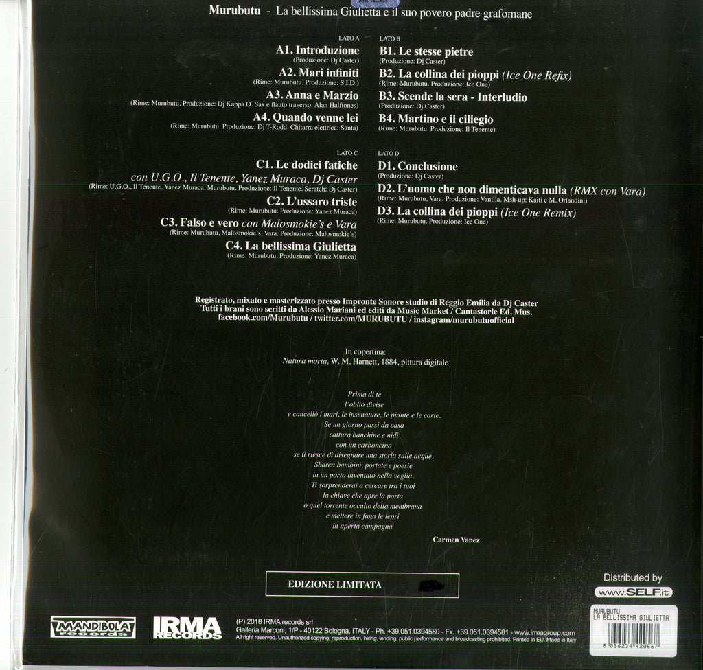 Il tuo Vinile LP di / Your Vinyl LP's :Murubutu - La Bellissima Giulietta (Vinyl Black) Lp 8056234420567 sarà spedito e consegnato in 24/48h in Italia 48/72 in Europa / will be shipped and delivered in 24 / 48h in Italy 48/72 in Europe