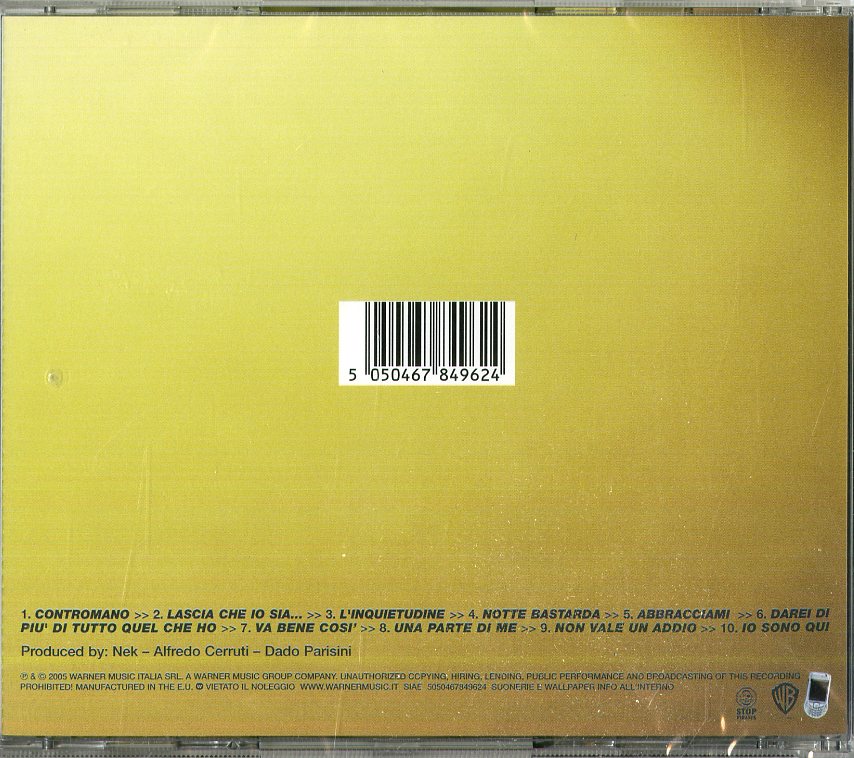 Il tuo cd di / your cd of : Nek - Una Parte Di Me Cd 5050467849624 sarà spedito e consegnato in 24/48h in Italia 48/72 in Europa / will be shipped and delivered in 24 / 48h in Italy 48/72 in Europe