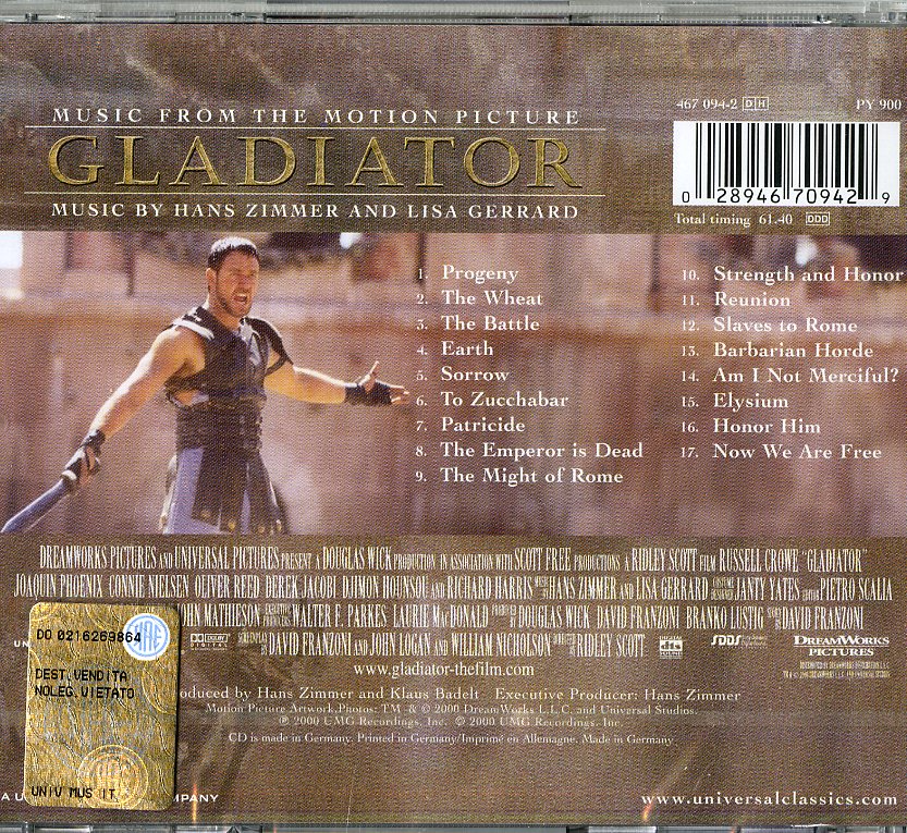 Il tuo cd di / your cd of : O.S.T.-Gladiator - Gladiator Cd 0028946709429 sarà spedito e consegnato in 24/48h in Italia 48/72 in Europa / will be shipped and delivered in 24 / 48h in Italy 48/72 in Europe