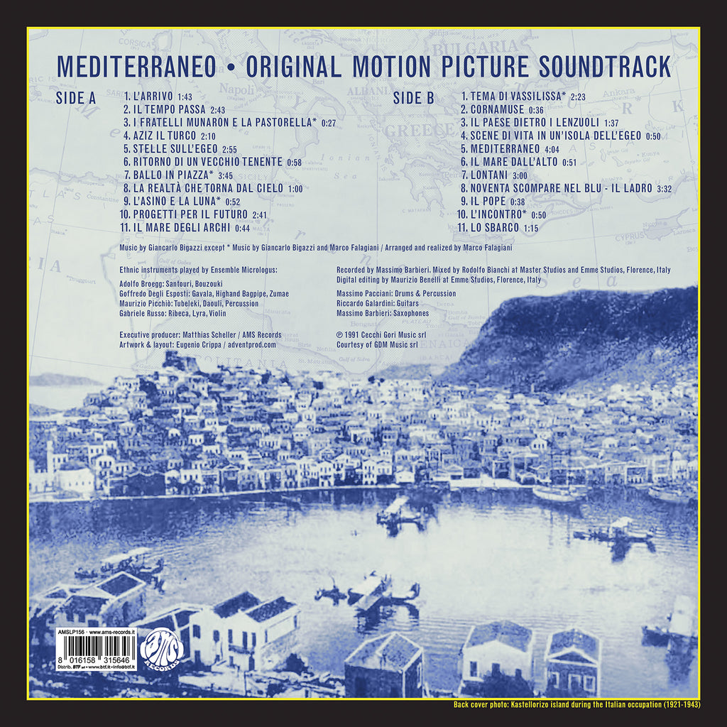 O. S. T. -Mediterraneo( Bigazzi Giancarlo, Falagiani Marco) - Mediterraneo (180 Gr. Vinyl Clear Blue Limited Edt.) Vinile LP - Vinyl record 8016158315646