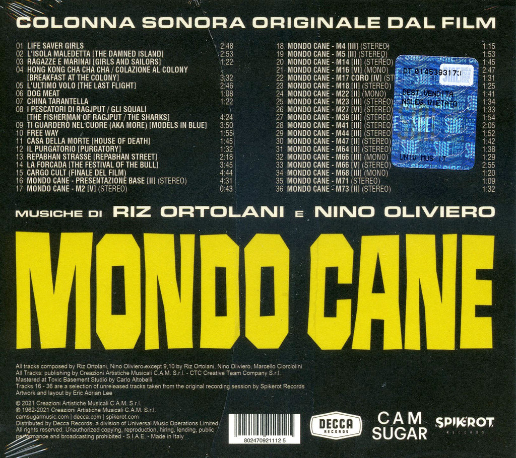 Il tuo cd di / your cd of : O. S. T. -Mondo Cane( Ortolani Riz, Oliviero Nino) - Mondo Cane (Digipack) Cd 8024709211125 sarà spedito e consegnato in 24/48h in Italia 48/72 in Europa / will be shipped and delivered in 24 / 48h in Italy 48/72 in Europe