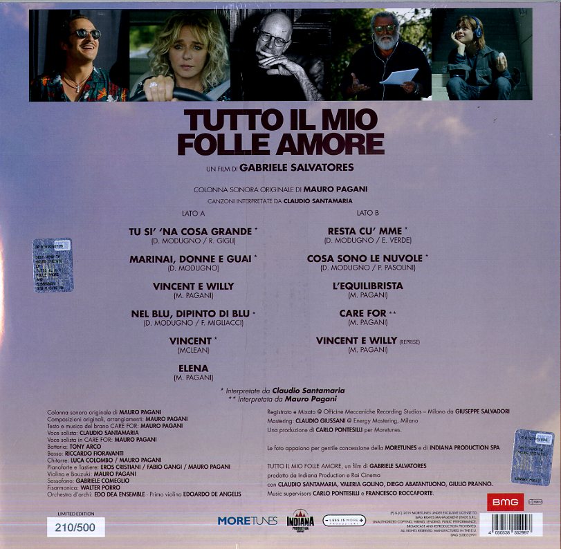 O. S. T. -Tutto Il Mio Folle Amore( Mauro Pagani) - Tutto Il Mio Folle Amore (180 Gr.Vinyl Black,Numerati Limited Edt.) Vinile LP - Vinyl record 4050538552997