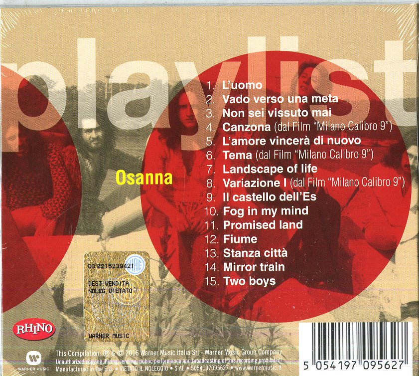 Il tuo cd di / your cd of : Osanna - Playlist: Osanna Cd 5054197095627 sarà spedito e consegnato in 24/48h in Italia 48/72 in Europa / will be shipped and delivered in 24 / 48h in Italy 48/72 in Europe