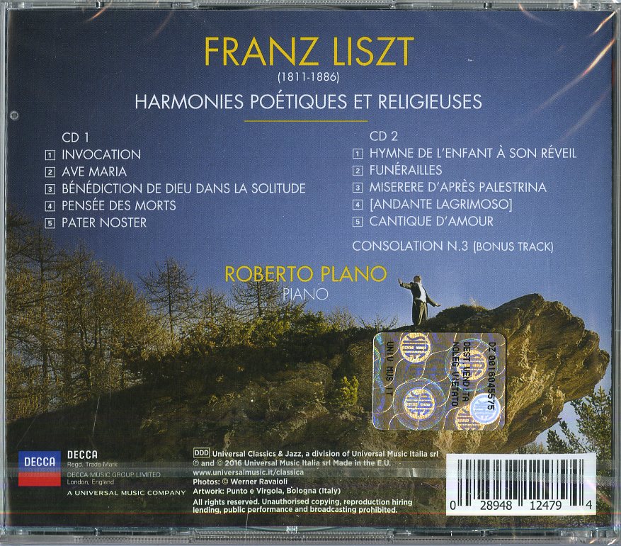 Il tuo cd di / your cd of : Plano Roberto (Piano) - Harmonies Poetiques Et Religieuses (2016) (Armonie Poetiche E Religiose) Cd 0028948124794 sarà spedito e consegnato in 24/48h in Italia 48/72 in Europa / will be shipped and delivered in 24 / 48h in Italy 48/72 in Europe
