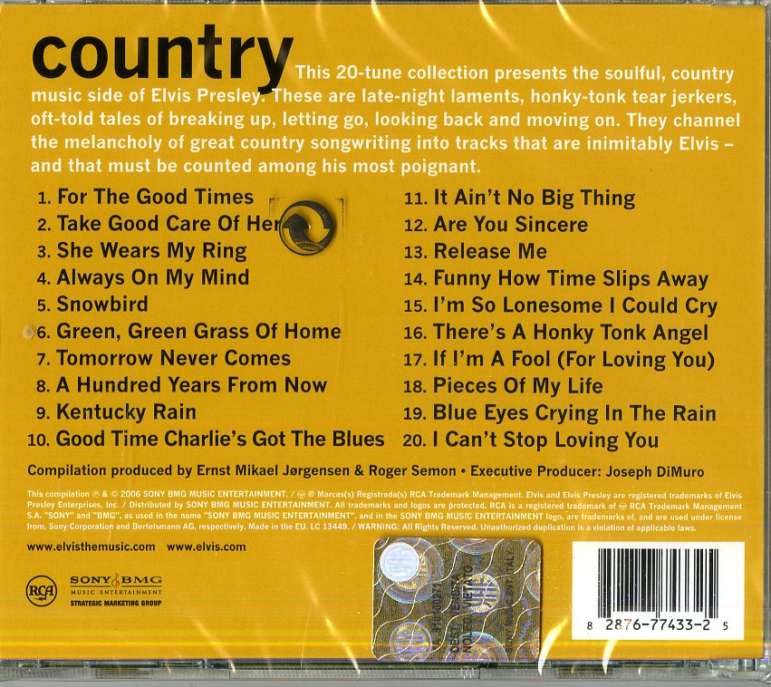 Il tuo cd di / your cd of : Presley Elvis - Elvis Country Cd 0828767743325 sarà spedito e consegnato in 24/48h in Italia 48/72 in Europa / will be shipped and delivered in 24 / 48h in Italy 48/72 in Europe