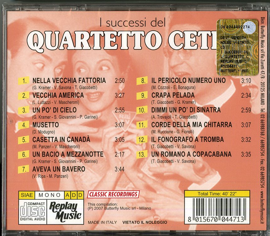 Quartetto Cetra Il - I Successi Del Quartetto Cetra CD 8015670044713