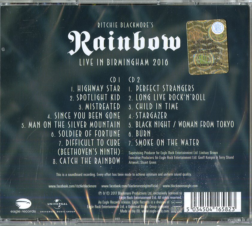Rainbow Ritchie Blackmore'S - Live In Birmingham 2016 CD 5034504165823