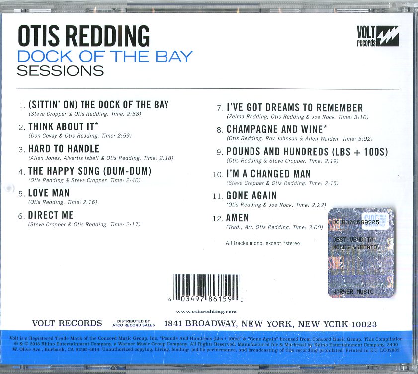 Il tuo cd di / your cd of : Redding Otis - Dock Of The Bay Sessions Cd 0603497861590 sarà spedito e consegnato in 24/48h in Italia 48/72 in Europa / will be shipped and delivered in 24 / 48h in Italy 48/72 in Europe