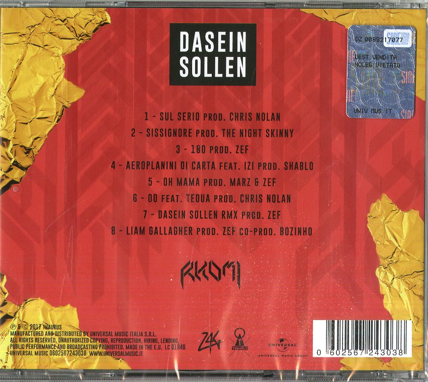 Il tuo cd di / your cd of : Rkomi - Dasein Sollen Cd 0602567243038 sarà spedito e consegnato in 24/48h in Italia 48/72 in Europa / will be shipped and delivered in 24 / 48h in Italy 48/72 in Europe