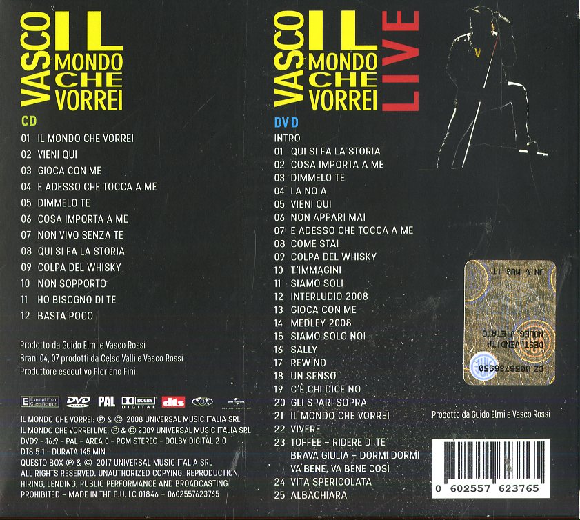 Il tuo cd di / your cd of : Rossi Vasco - Il Mondo Che Vorrei (Spec.Edt.Cd+Dvd) Cd 0602557623765 sarà spedito e consegnato in 24/48h in Italia 48/72 in Europa / will be shipped and delivered in 24 / 48h in Italy 48/72 in Europe