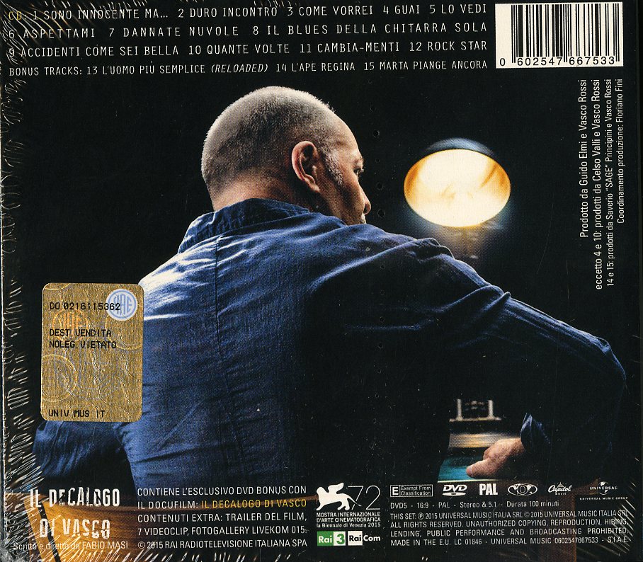 Il tuo cd di / your cd of : Rossi Vasco - Sono Innocente (Deluxe Edt.)(Cd+Dvd Il Decalogo Di Vasco) Cd 0602547667533 sarà spedito e consegnato in 24/48h in Italia 48/72 in Europa / will be shipped and delivered in 24 / 48h in Italy 48/72 in Europe