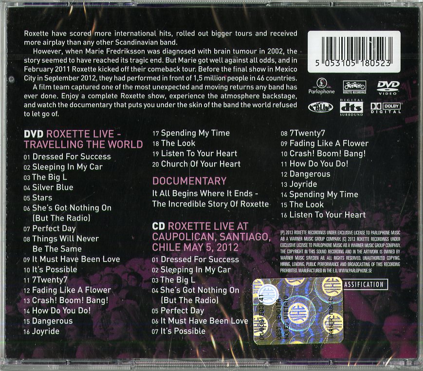 Il tuo cd di / your cd of : Roxette - Live Travelling The World (Cd+Dvd) Cd 5053105180523 sarà spedito e consegnato in 24/48h in Italia 48/72 in Europa / will be shipped and delivered in 24 / 48h in Italy 48/72 in Europe