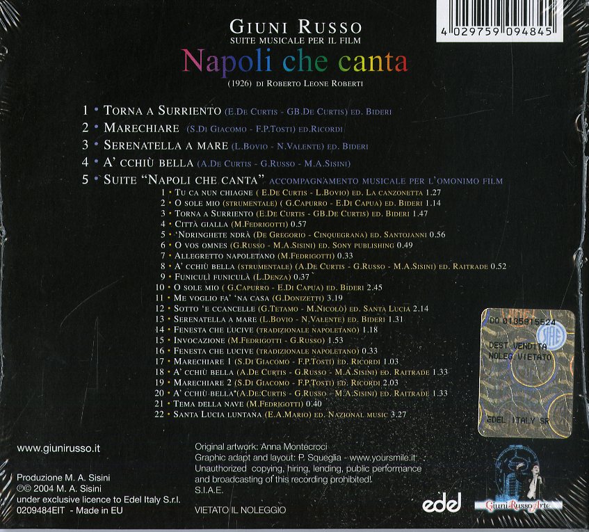 Il tuo cd di / your cd of : Russo Giuni - Napoli Che Canta Cd 4029759094845 sarà spedito e consegnato in 24/48h in Italia 48/72 in Europa / will be shipped and delivered in 24 / 48h in Italy 48/72 in Europe