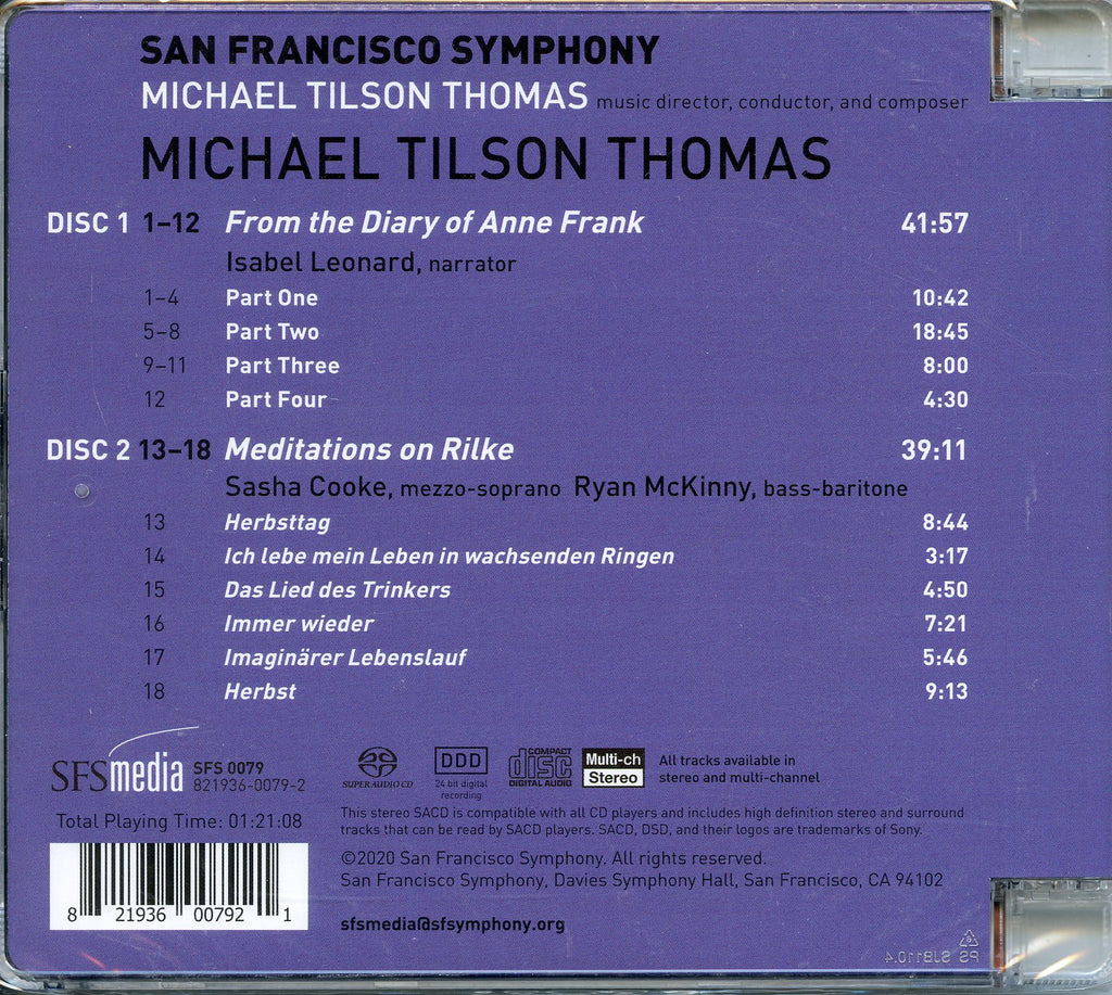 Il tuo cd di / your cd of : San Francisco Symphony - From The Diary Of Anne Frank & Meditations On Rilke Cd 0821936007921 sarà spedito e consegnato in 24/48h in Italia 48/72 in Europa / will be shipped and delivered in 24 / 48h in Italy 48/72 in Europe