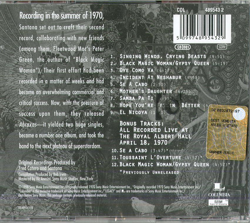 Il tuo cd di / your cd of : Santana - Abraxas Cd 5099748954329 sarà spedito e consegnato in 24/48h in Italia 48/72 in Europa / will be shipped and delivered in 24 / 48h in Italy 48/72 in Europe