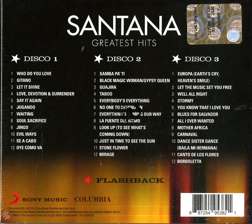 Il tuo cd di / your cd of : Santana - Greatest Hits (Box 3 Cd) Cd 0887254953821 sarà spedito e consegnato in 24/48h in Italia 48/72 in Europa / will be shipped and delivered in 24 / 48h in Italy 48/72 in Europe