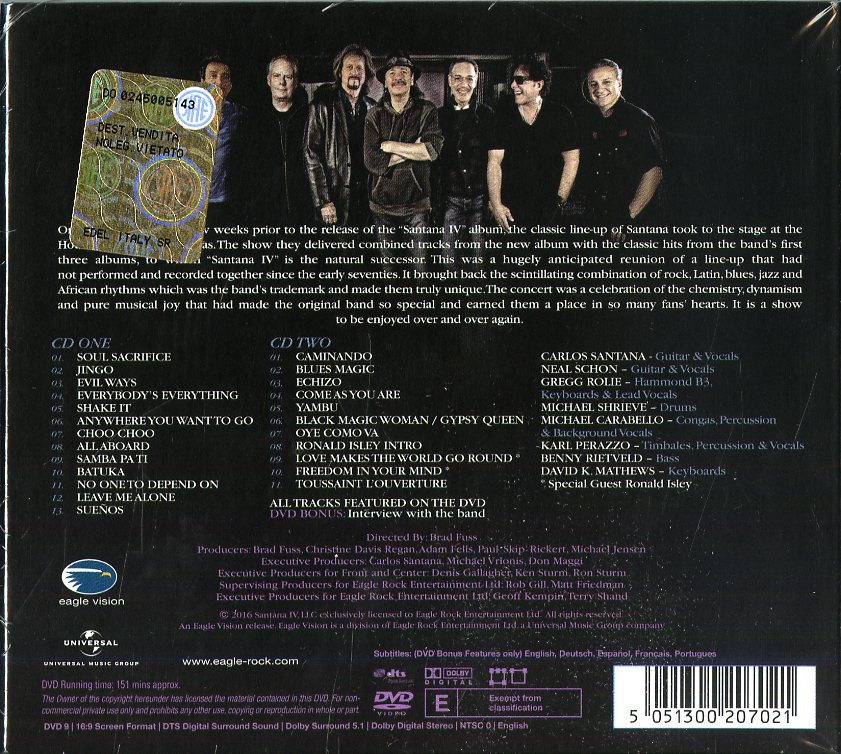 Il tuo cd di / your cd of : Santana Iv - Live At The House Of Blues Las Vegas (Dvd+2Cd) Cd 5051300207021 sarà spedito e consegnato in 24/48h in Italia 48/72 in Europa / will be shipped and delivered in 24 / 48h in Italy 48/72 in Europe