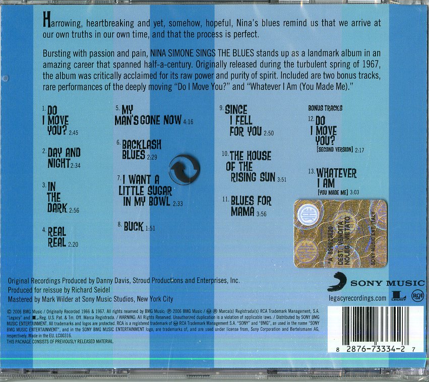 Il tuo cd di / your cd of : Simone Nina - Sings The Blues Cd 0828767333427 sarà spedito e consegnato in 24/48h in Italia 48/72 in Europa / will be shipped and delivered in 24 / 48h in Italy 48/72 in Europe