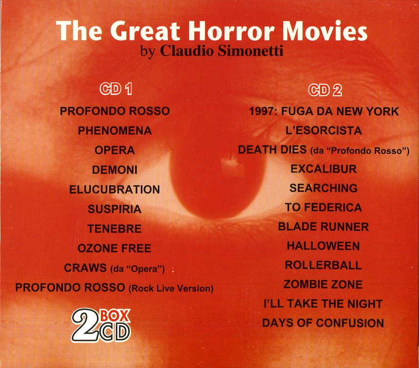 Il tuo cd di / your cd of : Simonetti Claudio - The Great Horror Movie By Simonetti Cd 8015670092158 sarà spedito e consegnato in 24/48h in Italia 48/72 in Europa / will be shipped and delivered in 24 / 48h in Italy 48/72 in Europe