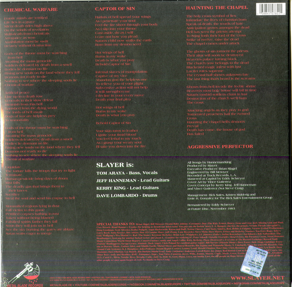 Il tuo Vinile LP di / Your Vinyl LP's :Slayer - Haunting The Chapel Lp 0039841578515 sarà spedito e consegnato in 24/48h in Italia 48/72 in Europa / will be shipped and delivered in 24 / 48h in Italy 48/72 in Europe