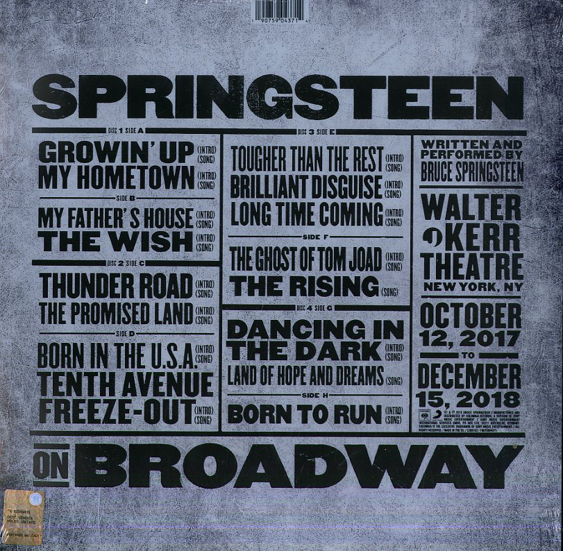 Springsteen Bruce - Springsteen On Broadway (Box 4 Lp) Vinile LP - Vinyl record 0190759043714