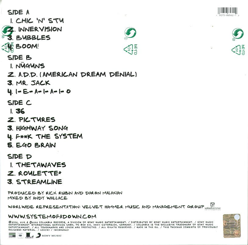 Il tuo Vinile LP di / Your Vinyl LP's :System Of A Down - Steal This Album! Lp 0190758656212 sarà spedito e consegnato in 24/48h in Italia 48/72 in Europa / will be shipped and delivered in 24 / 48h in Italy 48/72 in Europe