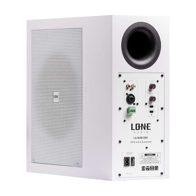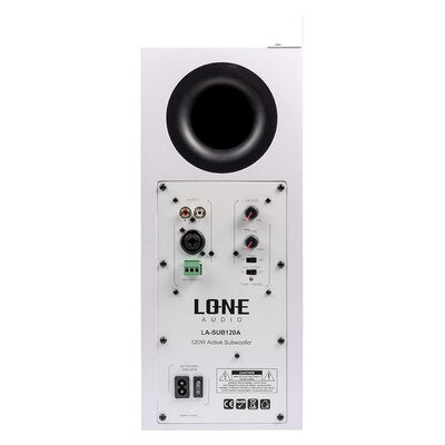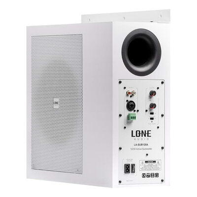 Descrizione (IT): Subwoofer attivo compatto da 120 WRMS progettato (anche) per l'installazione a parete. È dotato di un woofer da 8" con membrana in fibra di carbonio che garantisce una riproduzione delle basse frequenze di alta qualità. Il cabinet è realizzato in MDF per offrire robustezza e durata. Il subwoofer è fornito con un set di staffe per il fissaggio a qualsiasi superficie piana mediante 6 viti. LA-SUB120A ha una sensibilità di 93 dB/W/m e un regolatore che permette di variare la frequenza di taglio LP da 70 a 120 Hz. È possibile regolare anche la fase tra 0° e 180°. Le connessioni includono ingressi L/R RCA Combo e Euroblock permettendo una facile integrazione con altri dispositivi audio. Questo SUB si abbina perfettamente ai diffusori da parete LA-WMS5 e LA-WMS8 o all'altoparlante da incasso LA-CS-80.