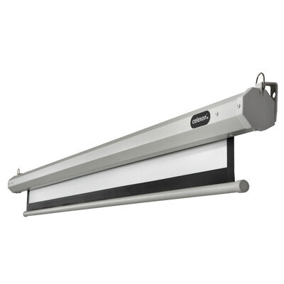 Celexon motorized screens from the Motor Economy series suitable for both wall and ceiling mounting are characterized by an excellent price / performance ratio. You can operate the screen with either the infrared remote control or the control box. The high quality motor is very quiet and guarantees excellent performance over time. The power cable outlet is located on the left side. The descent of the projector sheet can be adjusted as desired allowing you to set the format you want. In this way in addition to 16:9 it is also possible to set the 21:9 format. The screen optimized for projection with LCD and DLP projectors allows a wide viewing angle. The sheet with a Gain factor of 1.2 has excellent flatness and resistance. The black perimeter edges favor optimal containment of the images and greater contrast. The darkening black back prevents the projected light from dispersing and any light coming from the back side from being visible through the cloth. The screen is delivered ready for use: the package includes the control box the infrared remote control with batteries included the wall mounting brackets and a quick guide. Main features Useful projection area: 154 x 87 cm (16:9 format) Box dimensions: 184 x 10 x 8 cm Top black drop: 25 cm Side black borders: 3 cm on the left and right Bottom black drop: 3 cm Weight: 12 kg Power: 40 W voltage: 230 V frequency 50 Hz Power connector on the left (screen viewed from the front) Control box and infrared remote control included Suitable for wall and ceiling mounting Wide viewing angle of 100° Darkening black back Ideal for Home Cinema and presentations Gain factor 1.2 Adjustable sheet in different sizes Silent engine with stabilizer bar