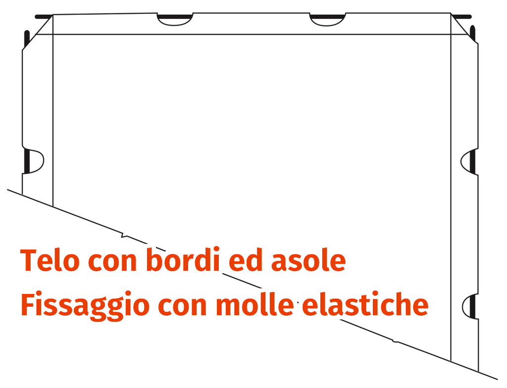 • Non si creano arricciature o grinze lungo i bordi (tipiche dei fissaggi ad occhielli di scarsa qualità)