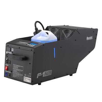The F-1 is a fazer designed to produce a fine dry fog with minimal fluid consumption. Equipped with an air pump system it mixes the fog fluid (water based compatible) with air efficiently for a high-quality effect. The F-1 includes a self-cleaning function that prolongs the life of the heating elements. It is compatible with various Antari fluids including FLG Heavy Fog Fluid FLH Super Fog Fluid and FLZ Long Hang Time Fog Fluid. This fazer is controllable via DMX 512 a handheld remote and a timer with wireless options available. It has a tank capacity of 2.4 liters and a fluid consumption of 8.5 mL/min. Finally it is equipped with Neutrik powerCON connections for power and 3- and 5-pin XLR for DMX control. User benefits Low fluid consumption Built-in air pump with self-cleaning function 3 DMX control modes High efficiency and reliability Areas of use Live events: concerts theater performances and festivals Film productions Theme parks and tourist attractions Discos and clubs Art installations and exhibitions