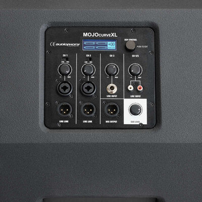 MOJOcurveXL is a versatile PA active loudspeaker for music vocals DJ sets and small live events. This new system uses a curved array type architecture based on three angled modules which guarantee a controlled and optimized dispersion of 100° x 70° (H x V). Each satellite features 3 x 8" mid-woofers and 12 x 1" tweeters and is mounted on a pneumatic telescopic bar which engages on the active subwoofer cabinet and also includes the connectors.The deepest bass is ensured by a powerful 15" long-excursion driver in bass-reflex while the Class-D amplifier equipped with all the necessary protections is capable of delivering a power of max. 1400 WRMS for the LF section and 800 W @ 4 ohm for the array of the HF section.The sound pressure reaches 128 dBSPL at a distance of 1 m and the frequency response is 35 to 18000 Hz. The electronic section which allows you to directly connect line or microphone sources is equipped with a 4-input mixer with Bluetooth TWS to connect your source even wirelessly and a powerful DSP with presets. Featuring TWS (True Wireless Stereo) technology the internal Bluetooth module will transmit the audio signal to a second MOJO to operate in stereo.