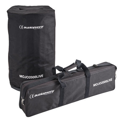 Active speaker composed of a subwoofer and a column system with mixer reverb and 1 stereo Bluetooth 5.0 TWS input. 12" subwoofer for a total power of 2400 W. Includes a room-type reverb on microphone channels 1 and 2 and a DSP with 3 presets (Music Voice DJ). Comes with protective bags for columns and subwoofers. Customer benefits Mobile and portable PA system 2400 W power Easy to assemble and disassemble columns on the subwoofer Allows audio transmission to a second MOJO system for wireless stereo (Bluetooth 5.0 TWS) Built-in DSP for sound optimization Areas of use Live events DJ sets Corporate presentations Conferences Private parties