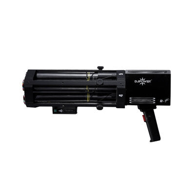 DJ Power R-7 is a five-outlet electric confetti gun that uses safe and pollution-free confetti-filled cannons and with LED flashing light in the center of the tube making it extremely eye-catching. Five confetti cannons can be installed and can be fired at once or in turns. To ensure greater safety there are two different ways to shoot. Built-in rechargeable batteries make it easy to work without an external power source. Main features Various color confetti cannon for option Plug & Play Double protection trigger safe and convenient Built-in lithium battery supports 100 times output once fully charged convenient to use without external power source Output distance: 5 m for 40 cm confetti cannon and 10 m for 80 cm confetti cannon