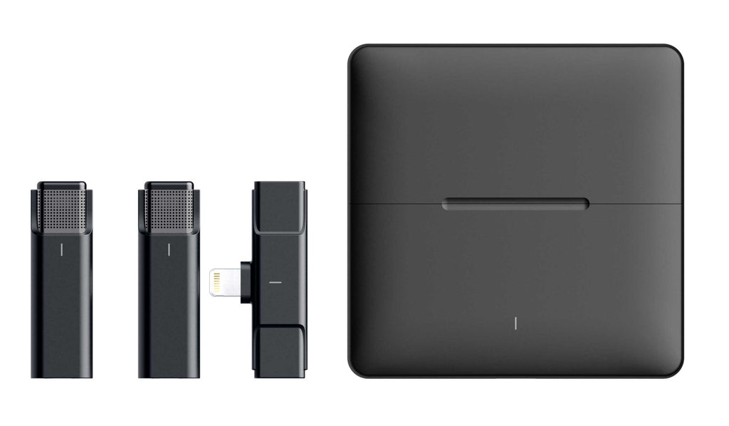 Indispensabile per chi effettua riprese ed interviste tramite iphone o ipad. E' composto da due piccoli radiomicrofoni trasmittenti e da un'altrettanto piccola ricevente da collegare alla presa lightning.Trasmittente e riceventi sono contenute in una custodia che le ricarica. Una volta estratte si abbinano automaticamente e sono subito pronte all'uso. Il raggio d'azione è di oltre 200mt e l'autonomia di una singola carica è di 4,5 ore. Grazie alla batteria della custodia, l'autonomia complessiva è di oltre 30 ore!Il microfoni si agganciano a giacche e magliette grazie alla loro clip. Il peso del singolo microfono è di soli 8,2 gr e sono muniti di circuito di riduzione intelligente del rumore di fondo.Grazie a questo apparecchio potrete realizzare interviste perfette anche a 2 persone contemporaneamente.