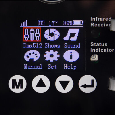 - 7 control modes: wired DMX, wireless DMX, Auto, sound detection, Remote control supplied, manual, by iOS / android Wi-Fi application