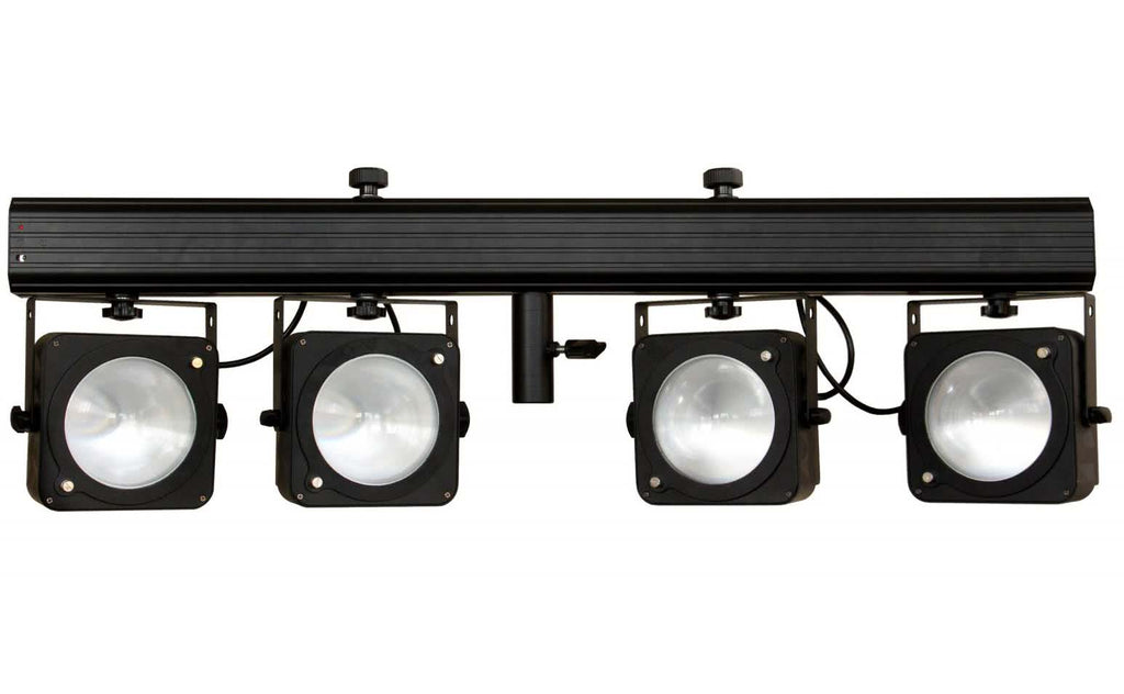 Elegante, compatto e potente a 4-bar della JB-Systems, con 4 fari LED COB da 36 watt e 2 angoli di fascio selezionabili. Caratteristiche JB-Systems COB-4BAR Potente 4BAR, elegante e compatto con 4 fari COB-LED a risparmio energetico. Non ci sono LED separati: ogni faretto ha un LED COB da 36W con una perfetta mixaggio cromatica e l'aspetto di una lampada convenzionale! Preparato per DMX senza fili: basta collegare un DONGLE WTR-DMX opzionale! (facoltativo) Eccezionale potenza luminosa elevata (eccesso rispetto alle tradizionali lampade PAR56 da 300W!) Telecomando IR incluso nella confezione: nessun controllo pesante, ideale per i DJ! Dotato di 2 prese di alimentazione, ognuna con telecomando on/off: ogni effetto (LED) con potenza fino a 500W può essere collegato! L'angolo del fascio di faretti LED è di 15° con obiettivo o di 100° senza obiettivo. Ideale per applicazioni mobili: lungo solo 1m e pesa solo 8kg! Molte possibilità di applicazione: Discoteche, DJ, stand fieristici,... Dimming 0-100% e funzione strobo ultra-veloce (nessuno strobo supplementare richiesto!) Ottimi programmi integrati per bellissimi e variegati spettacoli di luce! Disponibile con comando a pedale opzionale: Ideale per piccole bande! Display LCD alfanumerico 2x16 caratteri retroilluminato per una facile navigazione dei menu. Adattatore standard 35mm incluso, adatto per i nostri treppiedi con attacco 35mm. Il 4BAR viene fornito con una custodia leggera ma robusta. Varie modalità di funzionamento: Dispositivo stand-alone con telecomando a infrarossi: Campioni di colore automatico / sincronizzato con orologio + controllo On/Off di 2 effetti di illuminazione (opzionale). Modalità Master/Slave: Diverse 4BAR possono essere utilizzate insieme per bellissimi spettacoli di luce pre-programmati e sincronizzati con musica. Controllata dal nostro noto LEDCON-02 Mk2 o dal comando a pedale opzionale "COB-4BAR FOOTCONTROL". Controllo DMX: modalità di canale diverse con selezione dei programmi e controllo RGB singolo.