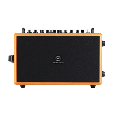 Musiccube i-MA90 Pro è un amplificatore professionale portatile, compatto e potente, dotato d'interfaccia USB e Bluetooth e progettato per migliorare l'espressività delle chitarre acustiche, grazie a un filtro appositamente progettato per filtrare la banda di frequenza in eccesso, e offrire al contempo effetti vocali eccezionali.È dotato di due woofer da 6" con magnete al neodimio e quattro mid-tweeter da 2" NdFeB, per una potenza totale di 140 WRMS fronita da stadi di amplificazione in Classe-D e controllo dinamico automatico.È possibile collegare 2 microfoni (anche on alimentazione Phantom indipendente) / 2 strumenti musicali sui canali CH1 e CH2 e 2 chitarre acustiche sui canali CH3 e CH4, con controlli di tono Bass, Middle, Treble oltre a un ingresso ausiliario analogico (mini-jack da 3,5 mm) e il cellulare (Live, Rec Out) tramite un cavetto digitale fornito in dotazione con interfaccia USB all'altro estremo. Dopo aver collegato il cellulare, si può aprire l'apposita App per utilizzare la funzione speaker in diretta che implementa vari effetti sonori analogici e altre funzioni fornite dal software, inclusa la registrazione interna e il live streaming. Presenti anche l'ingresso Bluetooth e USB IN per la lettura di file dalla pen drive.L'i-MA90 Pro utilizza la tecnologia di equalizzazione lineare CTLE per compensare la perdita di alte frequenze nell'elaborazione del segnale vocale, che preserva lo spessore della voce migliorando la chiarezza. L'amplificatore include inoltre quattro effetti integrati: hall, riverbero, delay e chorus. Se si necessita dell'effetto stereo, è possibile collegare due I-MA90 in serie e sperimentare fino a 12 canali effetto. Infine, è in grado di connettersi a un mixer e a un subwoofer grazie all'apposita uscita di linea. Musiccube i-MA90 Pro è anche facile da trasportare e può essere alimentato tramite 2 set di batterie al litio integrate che possono essere utilizzate per più di 6 - 12 ore quando sono completamente cariche, rimovibili e sostituibili. Un apposito display LCD indica il livello di carica delle batterie. La softbag è inclusa nel prezzo.Colore: quercia.Vantaggi per gli utentiConnettività Bluetooth e possibilità di riprodurre dal telefono cellulareIngresso per 2 chitarre e 2 microfoni / strumentiPossibilità di riprodurre vari effetti sonori analogici tramite il software APP Ambiti d'utilizzoSpettacoli liveSound reinforcementEsibizioni all'aperto in assenza di una fonte di alimentazioneAppassionati di strumenti musicaliTechnical characteristics