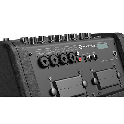 The Musiccube T3-II is a 150 W multifunctional and versatile PA system designed to deliver high performance in a compact and easy-to-carry format, weighing just 9.8 kg.It features an 8" woofer and four 2" mid-tweeters: state-of-the-art speakers, two of which (mid-tweeters) are strategically placed on the left and right flanks, projecting sound over a 270° range. When laid out horizontally, its 30° elevation angle ingeniously solves the feedback dilemma. The "panoramic sound" design therefore not only ensures frontal sound propagation, but also provides a useful rear contribution for performers in the back for real-time feedback.The Musiccube T3-II features four independent input channels, each with bass/treble adjustment and reverb adjustment knob. These inputs, equipped with Combo connectors, support microphones, condenser microphones with phantom power (CH1 and CH2 only), guitars and other instruments. Channels 3 and 4, in addition to reverb, offer chorus effects for electric guitars, wind instruments and keyboards. It also has AUX, RCA, Bluetooth and USB inputs.Through its intuitive audio interface - a special digital cable that is included - this revolutionary PA speaker connects seamlessly to mobile devices, either via a 3.5 mm mini-jack digital connector or via USB Type-C. It also allows online streaming and internal recording, acting as a digital audio bridge for mobile devices.The T3-II is powered by two built-in 2550 mAh lithium batteries each, which provide approximately 6 hours of battery life, depending on use. The softbag is included in the price. This system is ideal for outdoor performances, live shows and other applications that require powerful, clear sound.User benefits4 MIC / line / instrument inputsPortability thanks to its low weightUSB interfaceIntegrated professional sound card that supports a seamless connection to the main streaming transmission platformsBattery power supply for use even in places where there is no power supplyAreas of useIndoor and outdoor mobile showsAudio streaming and recordingEvents where there is no power source available