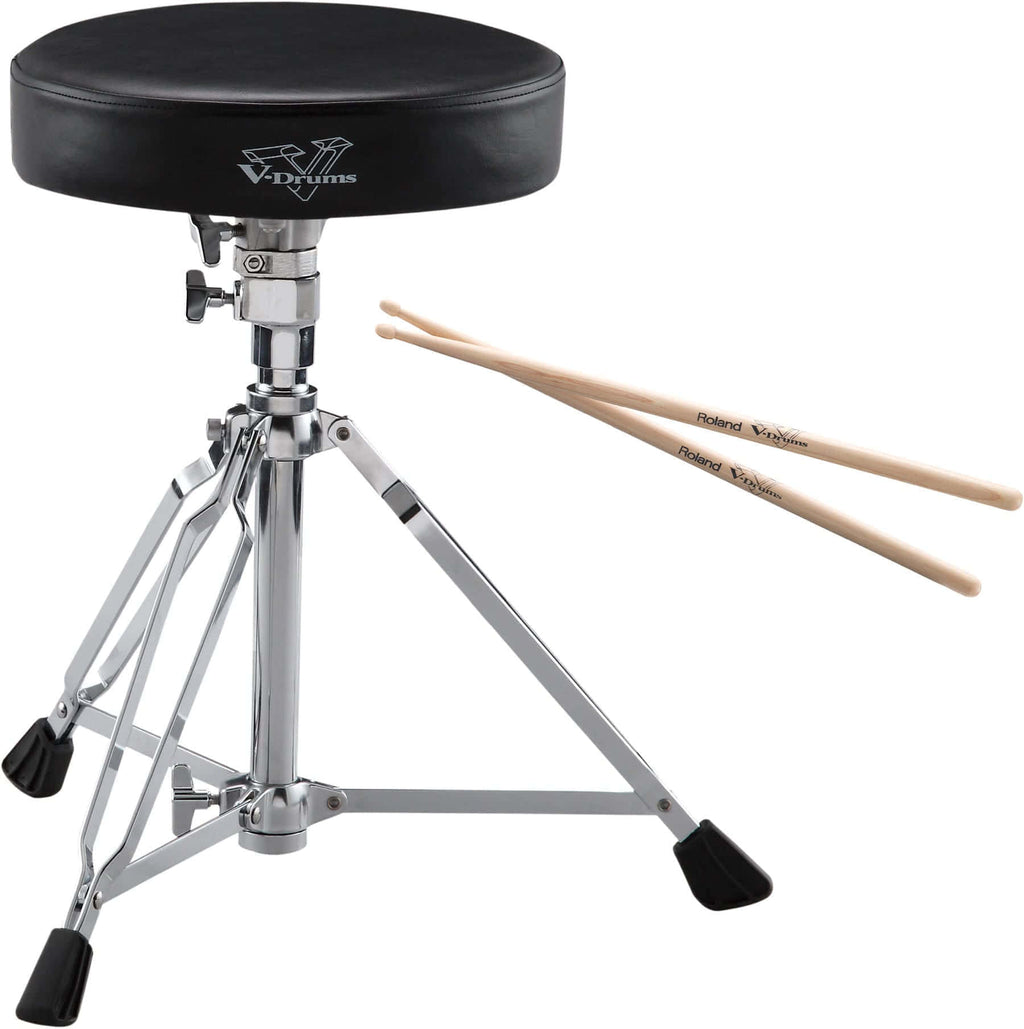 È composto da una coppia di bacchette in Hickory e da uno sgabello per batteria robusto e a doppio rinforzo. Entrambi sono decorati con il logo Roland V-Drums e offrono una seduta e un comfort di gioco durevoli e affidabili per tutti i batteristi.