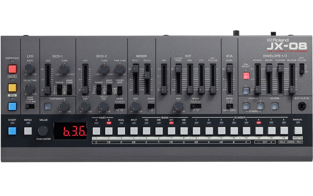 Riproduzione autentica del leggendario sintetizzatore JX-8P del 1985