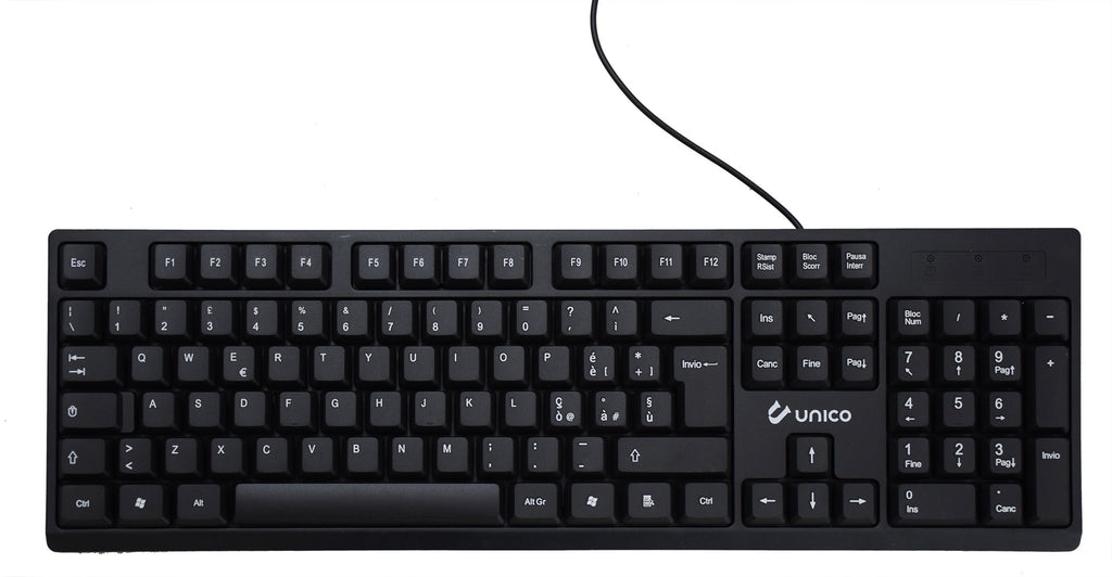 Tastiera standard con tastierino numerico e cavo da 1,25mt con spina USB. Utilizzable sia con computer windows che con altri sistemi operativi. Economica ma robusta, si collega in 1 secondo e non richiede alcun driver per il funzionamento.3 led mostano il blocco del tastierino numerico, delle maiuscole e dello scorrimento.