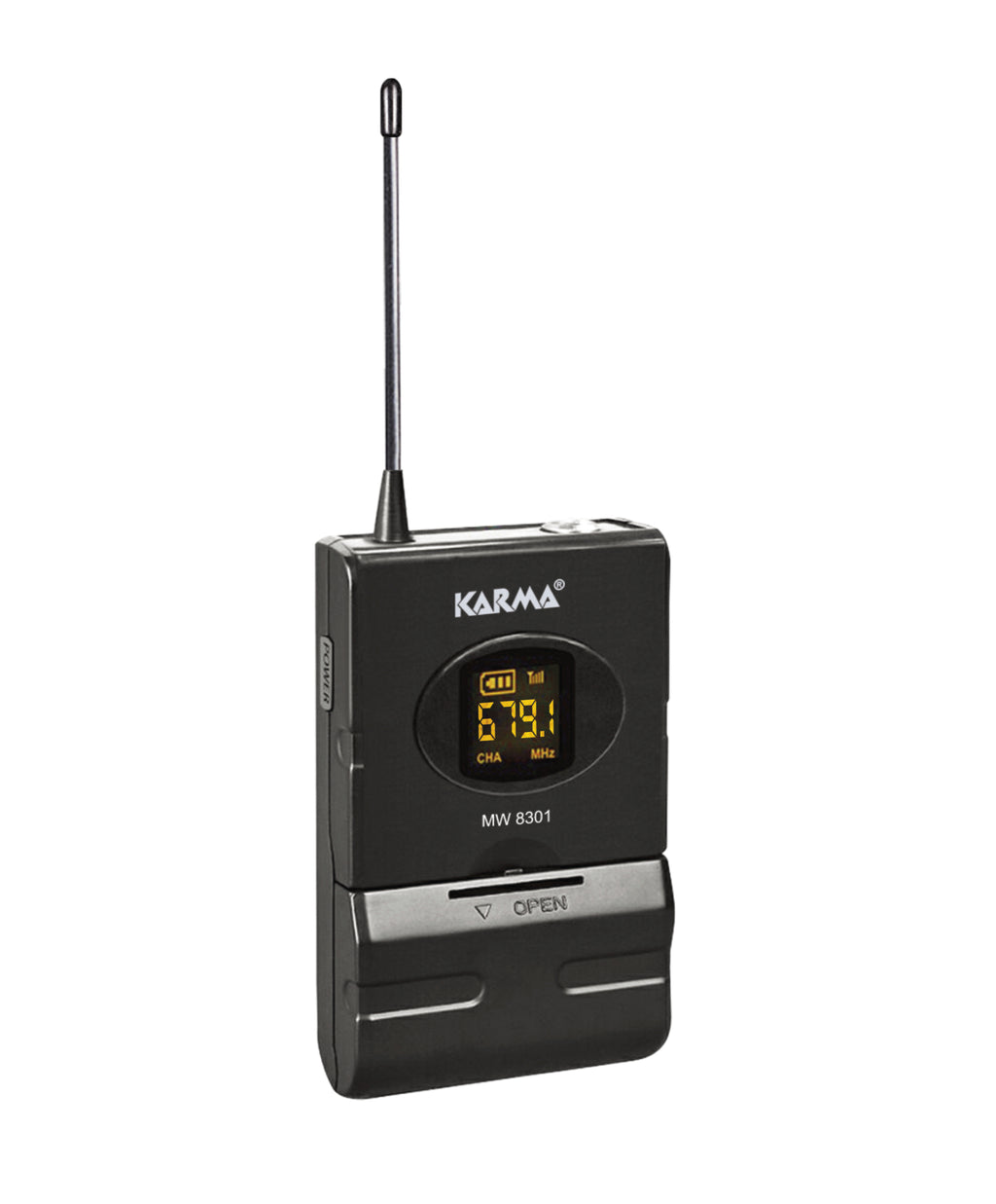 Trasmettitore adatto all'utilizzo in abbinamento a radiomicrofoni della serie SET 8300/ 8302. Frequenza operativa A: da 679.100 MHz a 694.100 MHz Impiega 2 batterie AA - 1,5V (non incluse) e microfono lavalier o archetto (non incluso)
