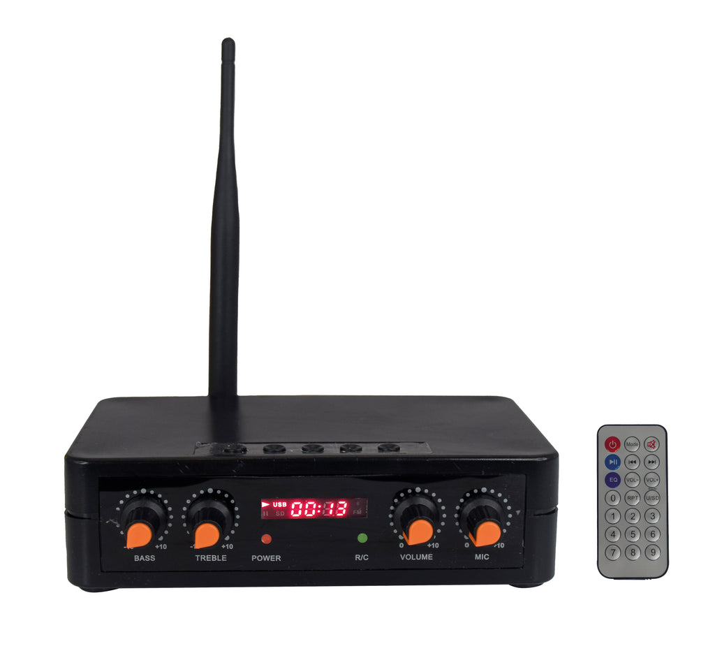 Trasmettitore in grado di funzionare in abbinamento a diffusori FRD SPK1, FRD SPK2 e FRD SPK3.Si abbina ai diffusori in pochi secondi ed è subito in grado di inviare musica proveniente da chiavette USB, Bluetooth, radio FM o da un microfono/segnale di linea esterno.E' alimentato da un piccolo trasformatore e dotato di telecomando per il controllo a distanza. Alzando il volume, si aumenterà contemporaneamente il volume di tutti i diffusori collegati rendendo estremamente facile l'utilizzo in ogni contesto.